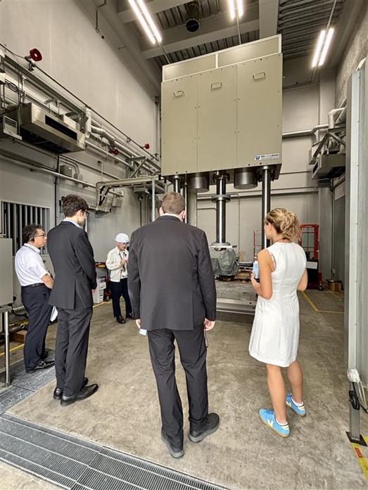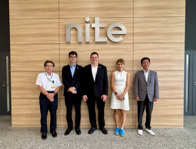 令和7年9月24日(水)、在日オーストラリア大使館の佐々木ダグラス調査官とオーストラリア産業科学資源省バッテリー政策課ディヤナ・ミルコビッチ課長を代表とする視察団3名がNITE大阪事業所のNLAB※1を訪問しました。