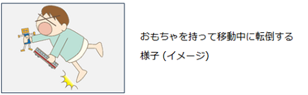 おもちゃをこどもが持って移動していたところ、転倒し、顔に裂傷を負いました。(2024年 東京都2歳女児 軽傷)