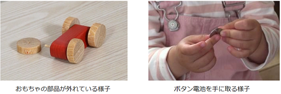 こどもがおもちゃでケガをしたり、おもちゃから外れた部品を飲み込んだりする事故が発生しています。日頃から、おもちゃが壊れて鋭利な箇所ができていないか、外れやすくなっている部品や電池がないかを点検しましょう。