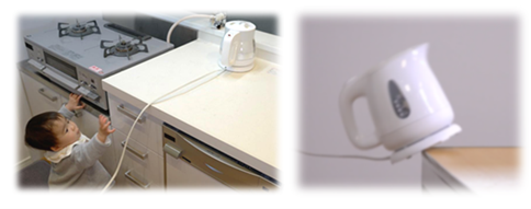 〇電気ケトルを転倒させない、乳幼児の手が届くところで使わない