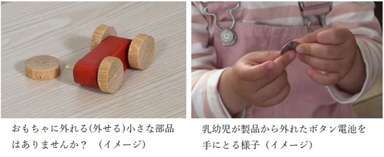 ・ボタン電池を使った製品のふたが外れ、乳幼児がボタン電池を誤飲する事故が報告されています。このような製品を乳幼児が手の届く場所には置かないようにしましょう。
